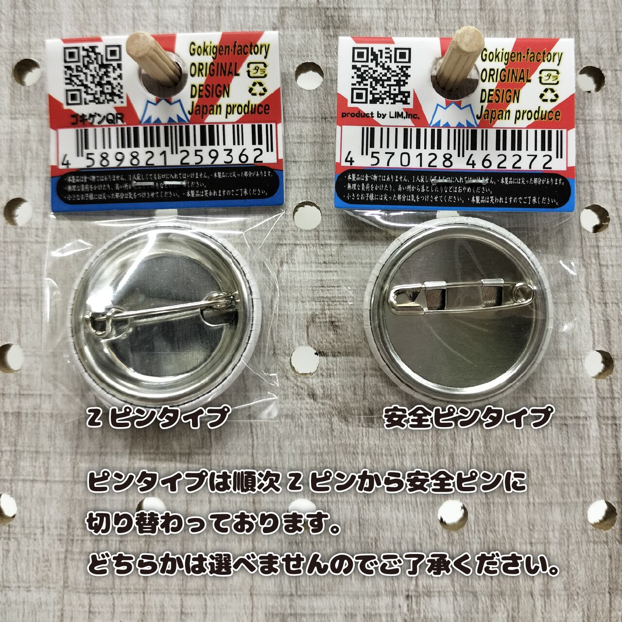 ※ピンタイプは順次Zピンから安全ピンに切り替わっております。どちらかは選べませんのでご了承ください。