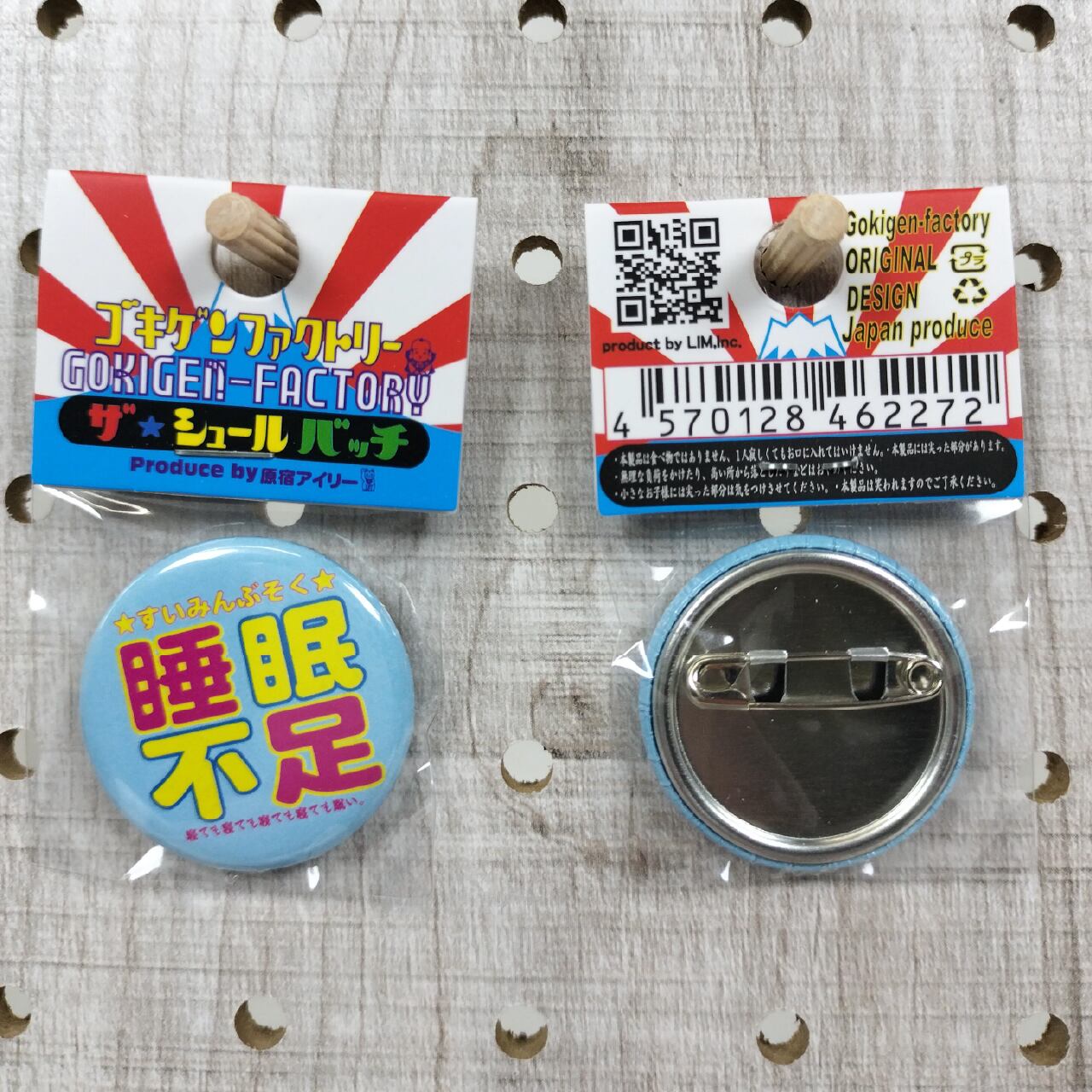 睡眠不足 缶バッチ おもしろ 32mm 夜ふかし 隈 生活習慣 寝坊 日本語 ゴキゲンファクトリー GOKIGEN-FACTRY