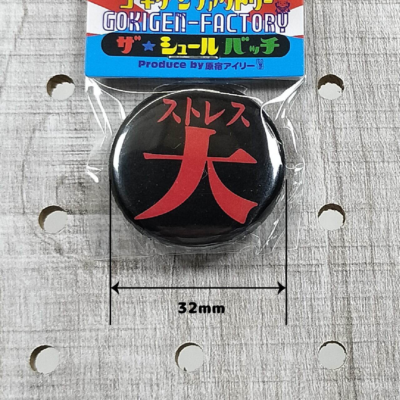 ストレス大 缶バッチ おもしろ 32mm 刺激 相談 運動 睡眠 日本語 ゴキゲンファクトリー GOKIGEN-FACTRY