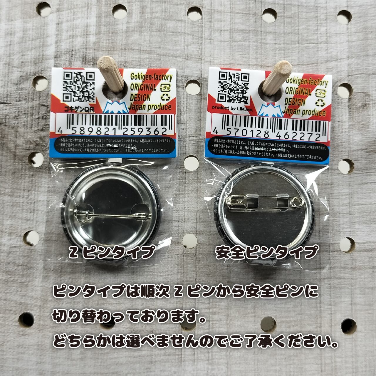 ※ピンタイプは順次Zピンから安全ピンに切り替わっております。どちらかは選べませんのでご了承ください。