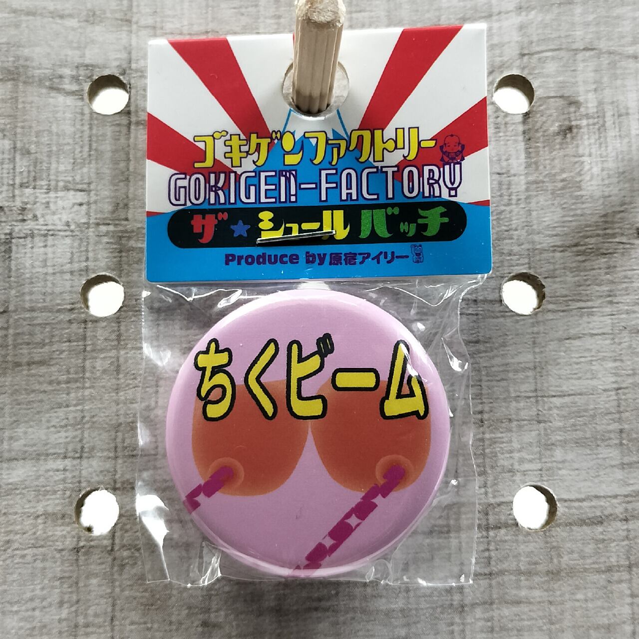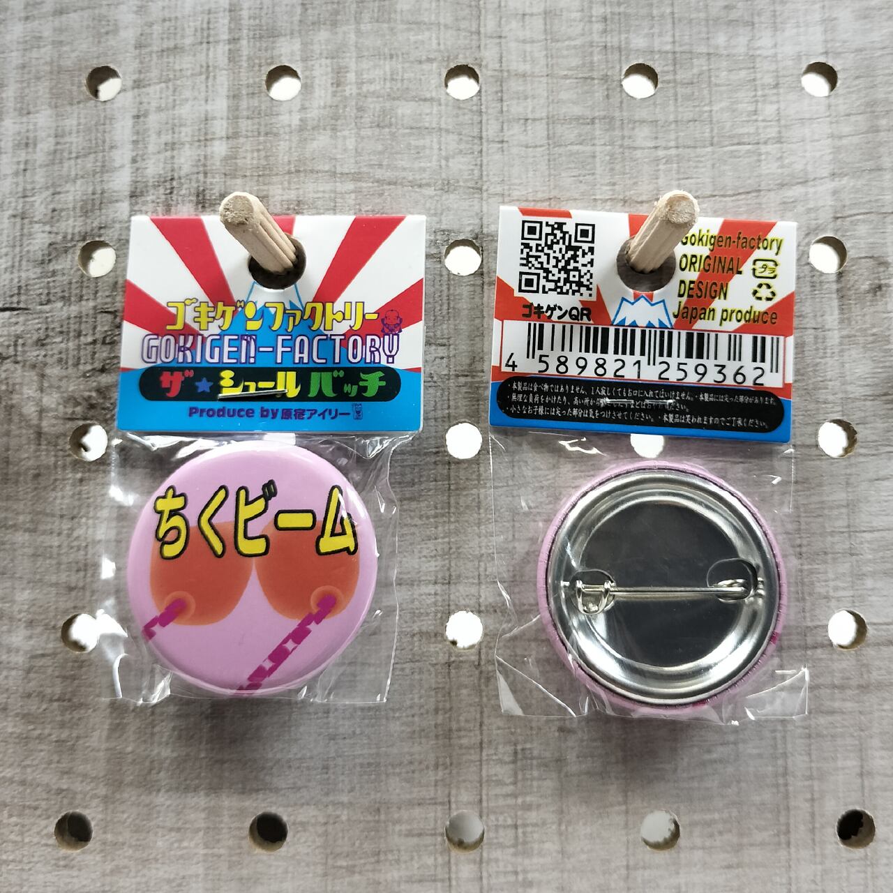 ちくビーム 缶バッチ おもしろ 32mm えろ おっぱい 下ネタ 乳頭 日本語 ゴキゲンファクトリー GOKIGEN-FACTRY