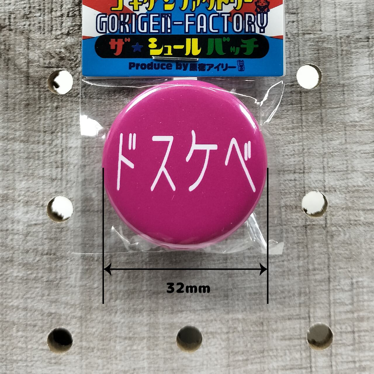 ドスケベ 缶バッチ おもしろ 32mm えろ 下ネタ ピンク 女狂い 変態 ゴキゲンファクトリー GOKIGEN-FACTRY