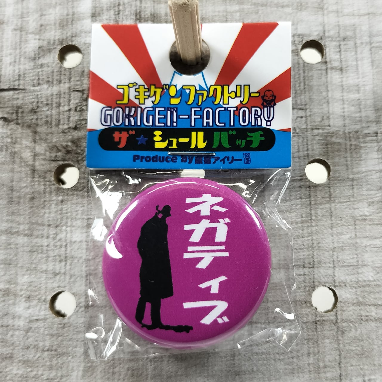 ネガティブ 缶バッチ おもしろ 32mm マイナス思考 暗い 消極的 後ろ向き 否定的 ゴキゲンファクトリー GOKIGEN-FACTRY