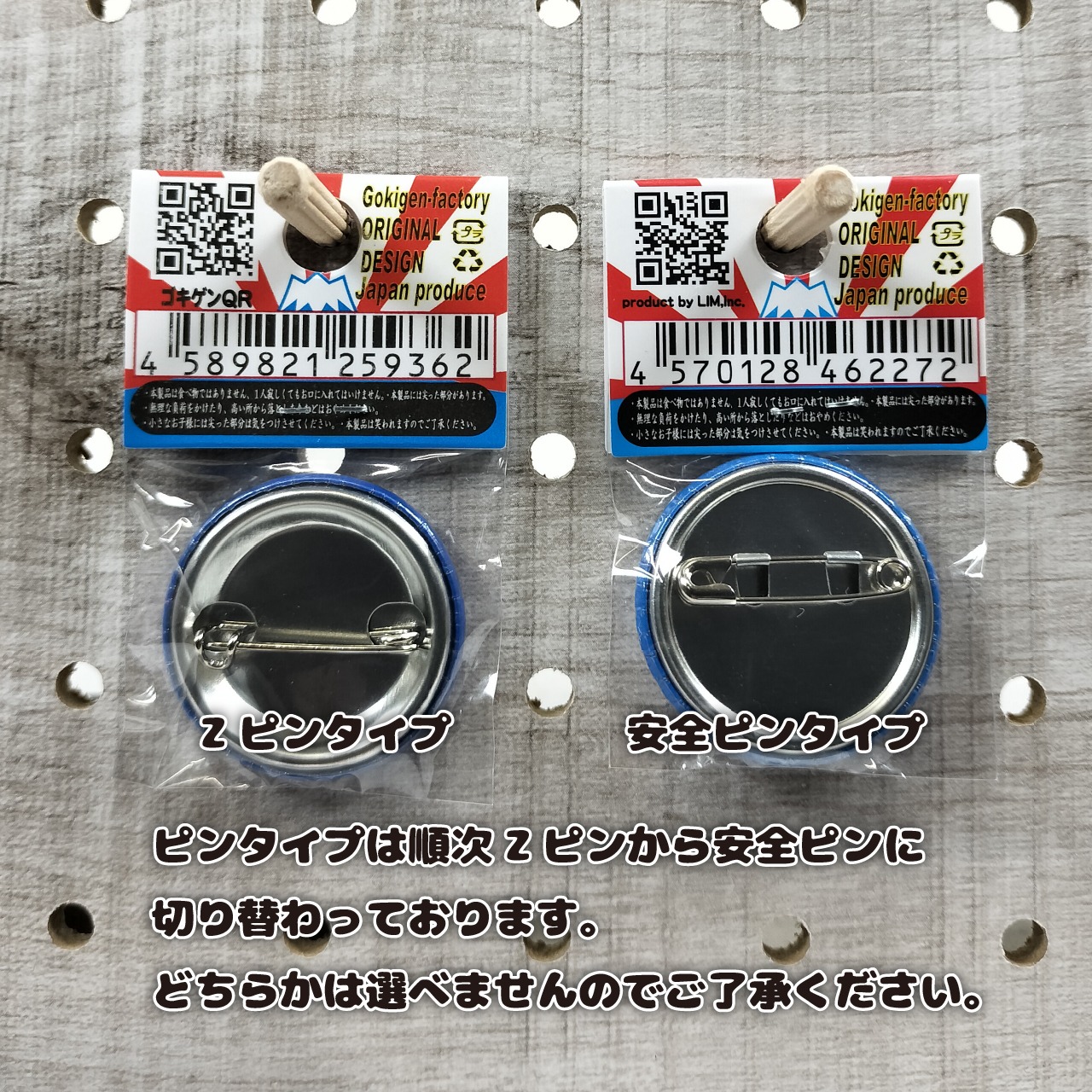 ※ピンタイプは順次Zピンから安全ピンに切り替わっております。どちらかは選べませんのでご了承ください。