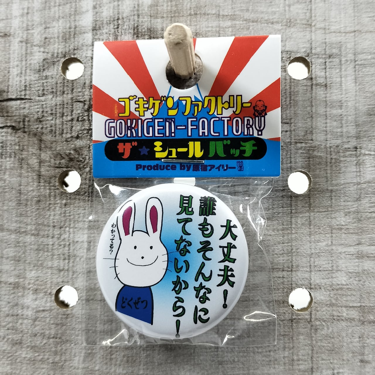 毒舌 大丈夫!誰も見てないから! 缶バッチ おもしろ 32mm セーフ 目もくれない 気にしない 人目を忍んで 日本語 ゴキゲンファクトリー GOKIGEN-FACTRY