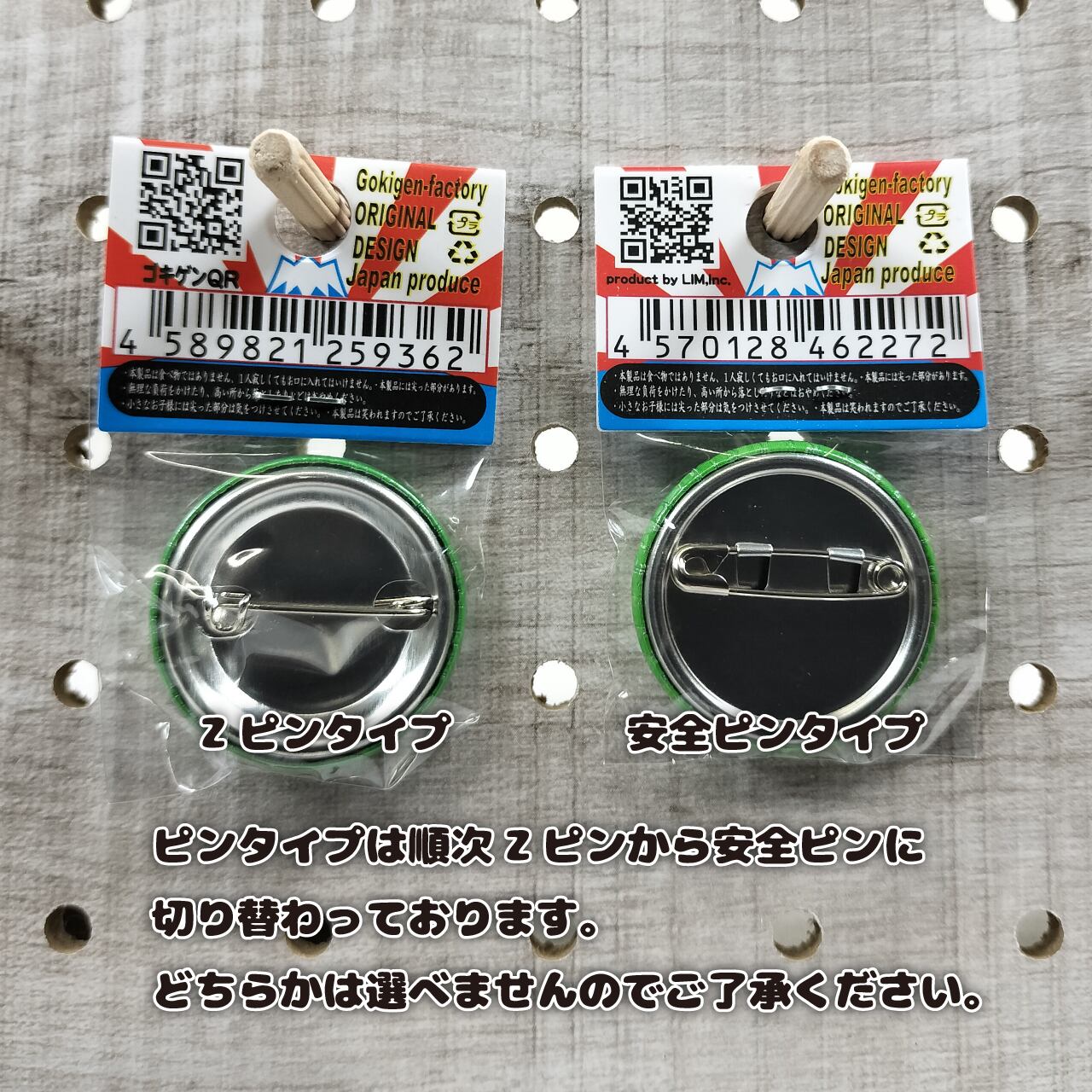 ※ピンタイプは順次Zピンから安全ピンに切り替わっております。どちらかは選べませんのでご了承ください。