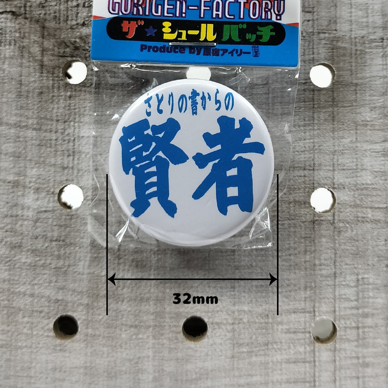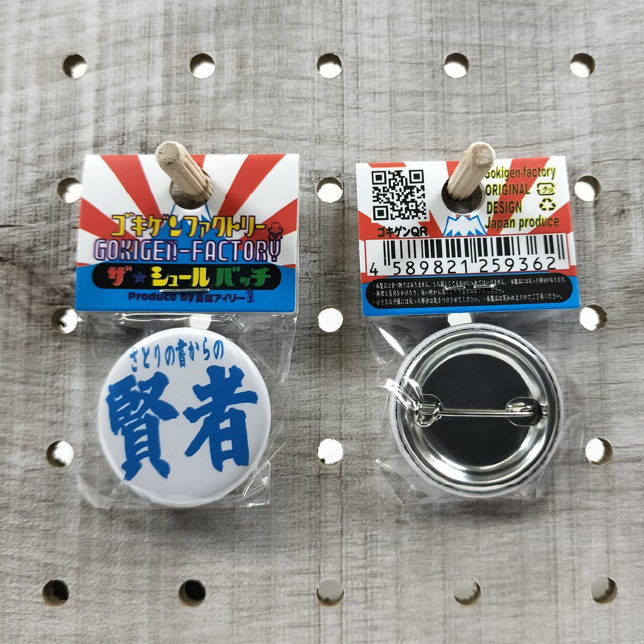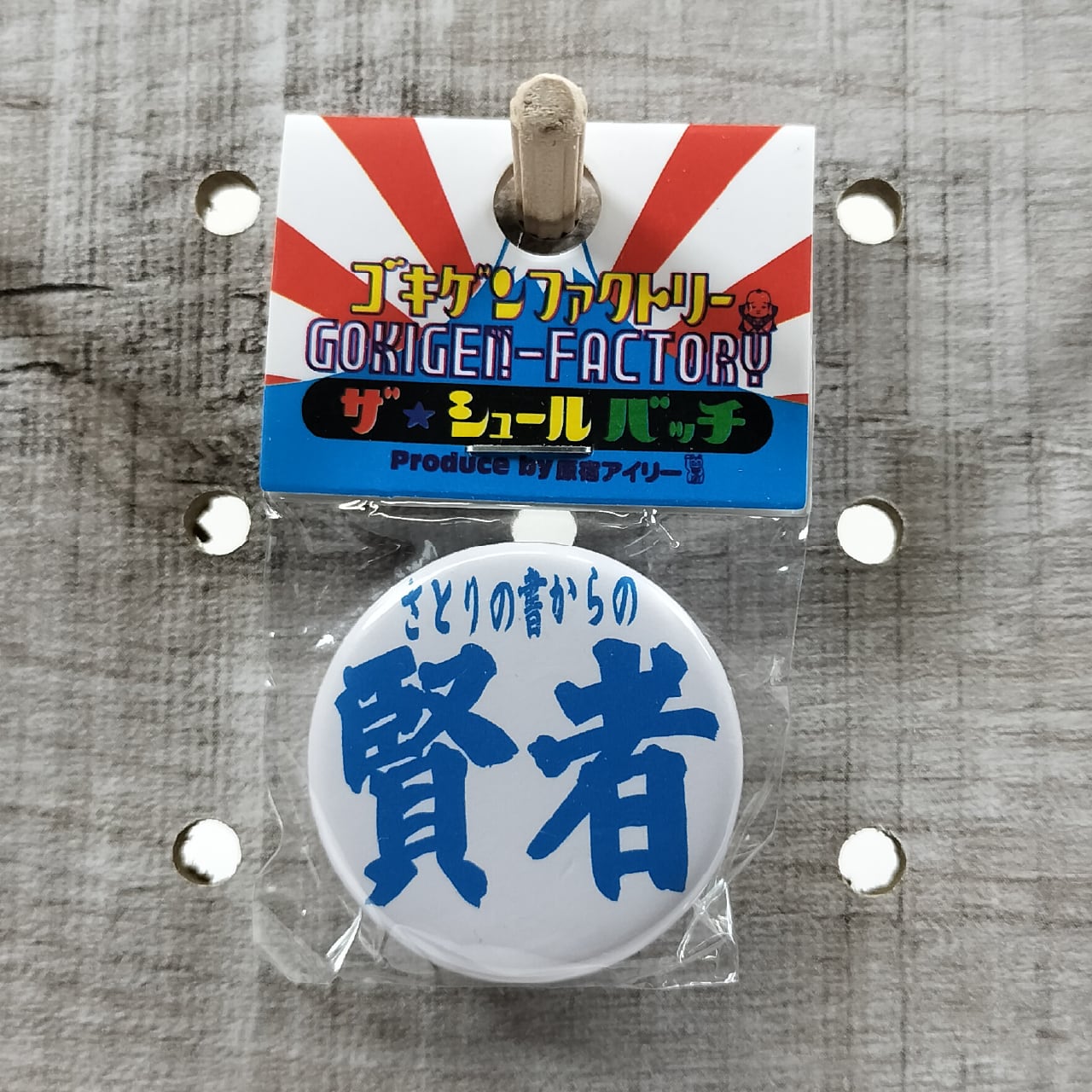 悟りの書からの賢者 缶バッチ おもしろ 32mm 賢い人 日本語 ゴキゲンファクトリー GOKIGEN-FACTRY