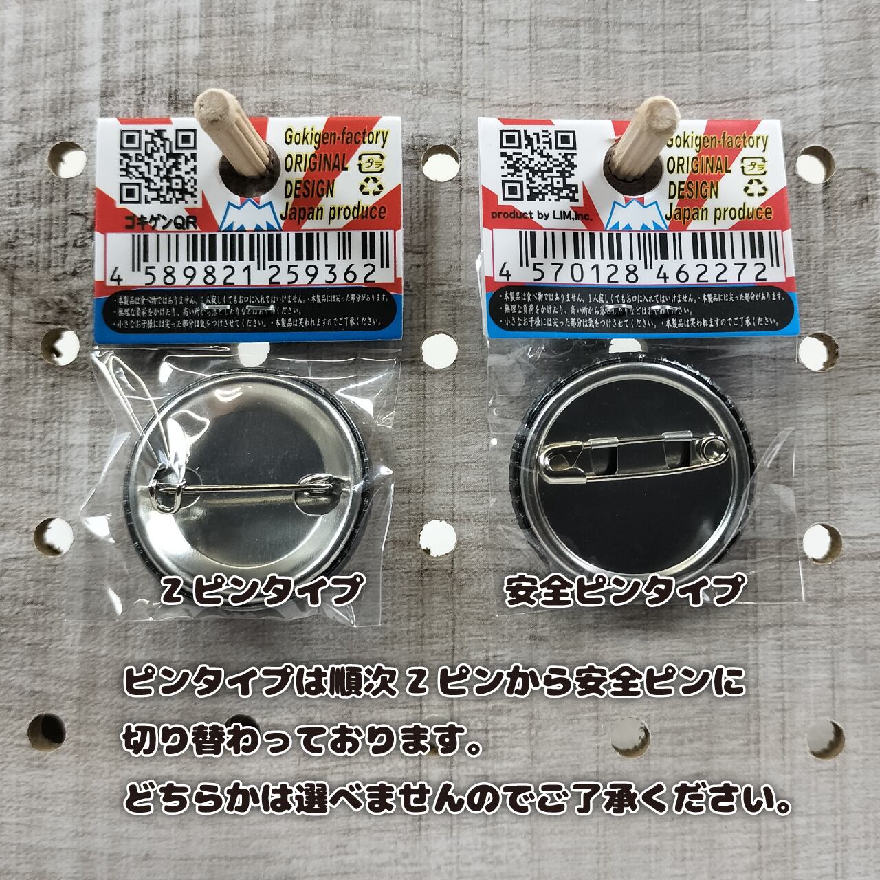 ※ピンタイプは順次Zピンから安全ピンに切り替わっております。どちらかは選べませんのでご了承ください。