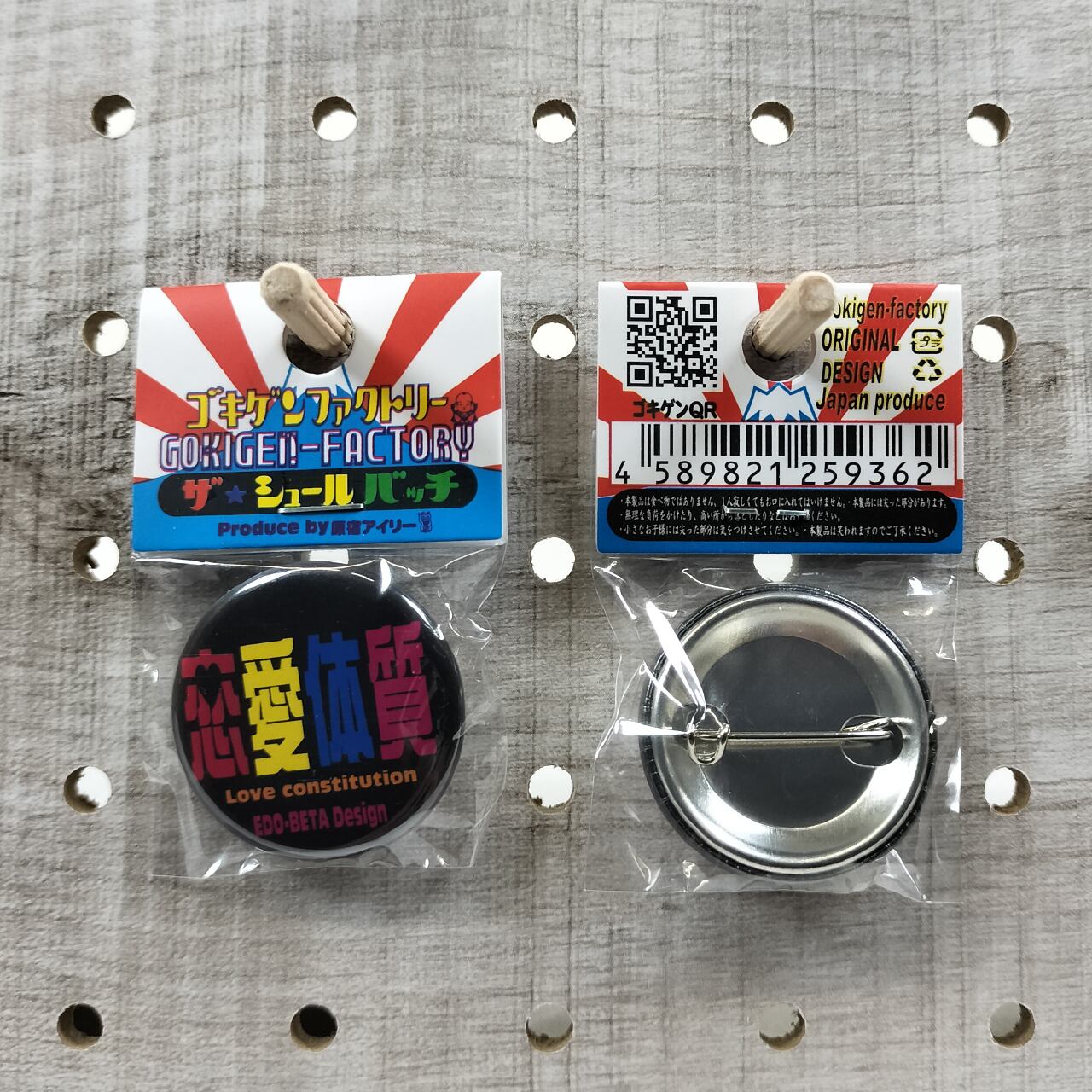 恋愛体質 缶バッチ おもしろ 32mm チョロい 恋多き 依存気質 ロマンチスト 日本語 ゴキゲンファクトリー GOKIGEN-FACTRY