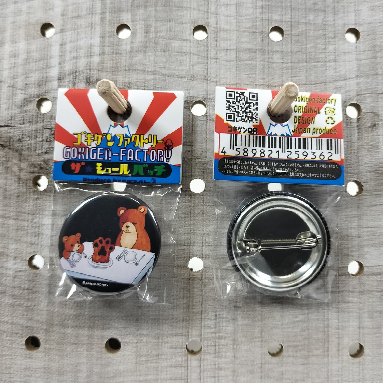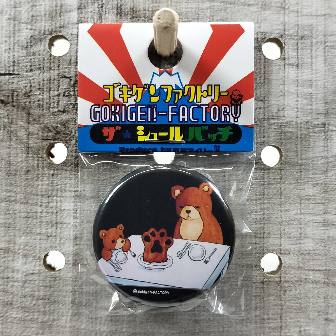 熊の手 缶バッチ おもしろ 32mm 動物 ジビエ料理 高級 日本語 ゴキゲンファクトリー GOKIGEN-FACTRY