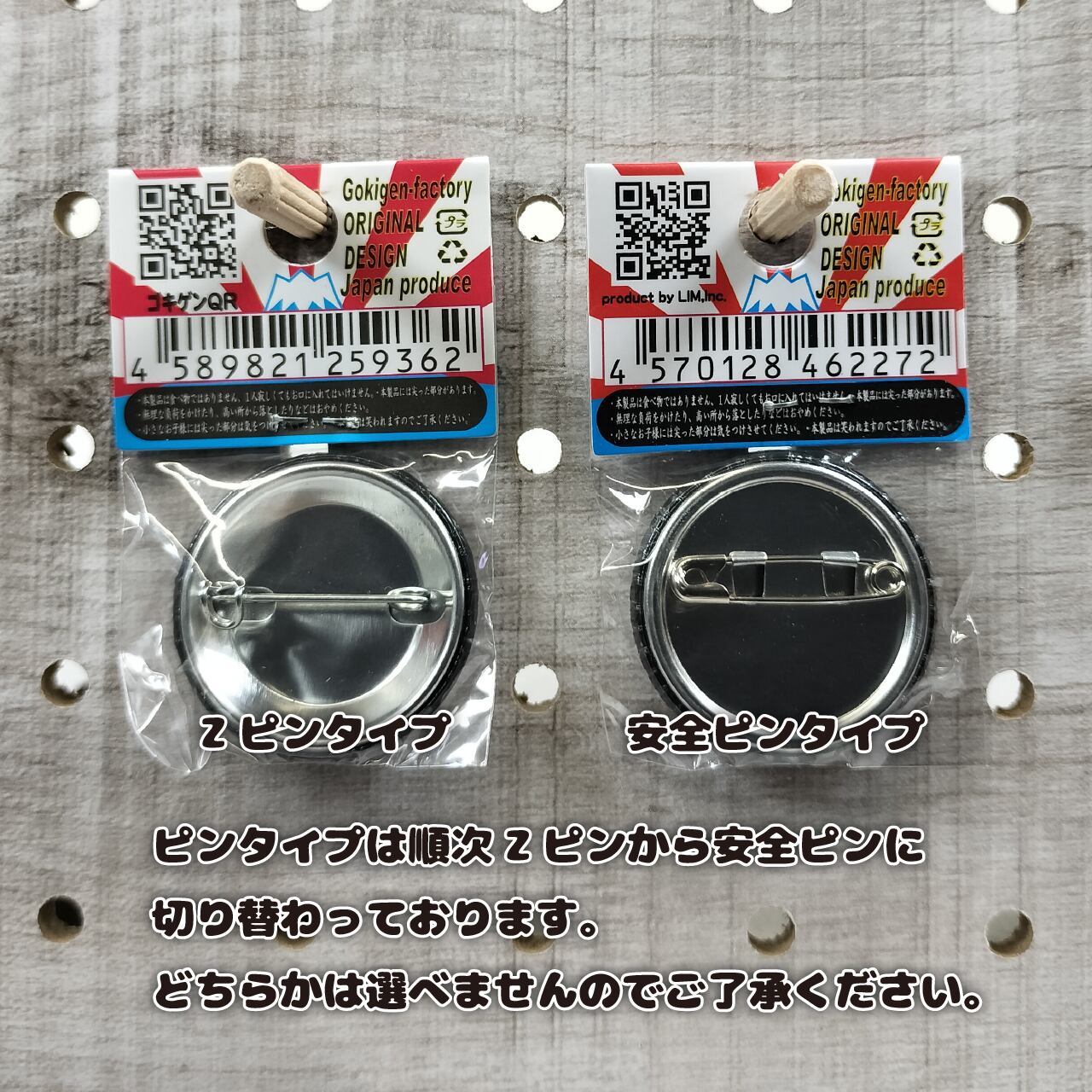 ※ピンタイプは順次Zピンから安全ピンに切り替わっております。どちらかは選べませんのでご了承ください。