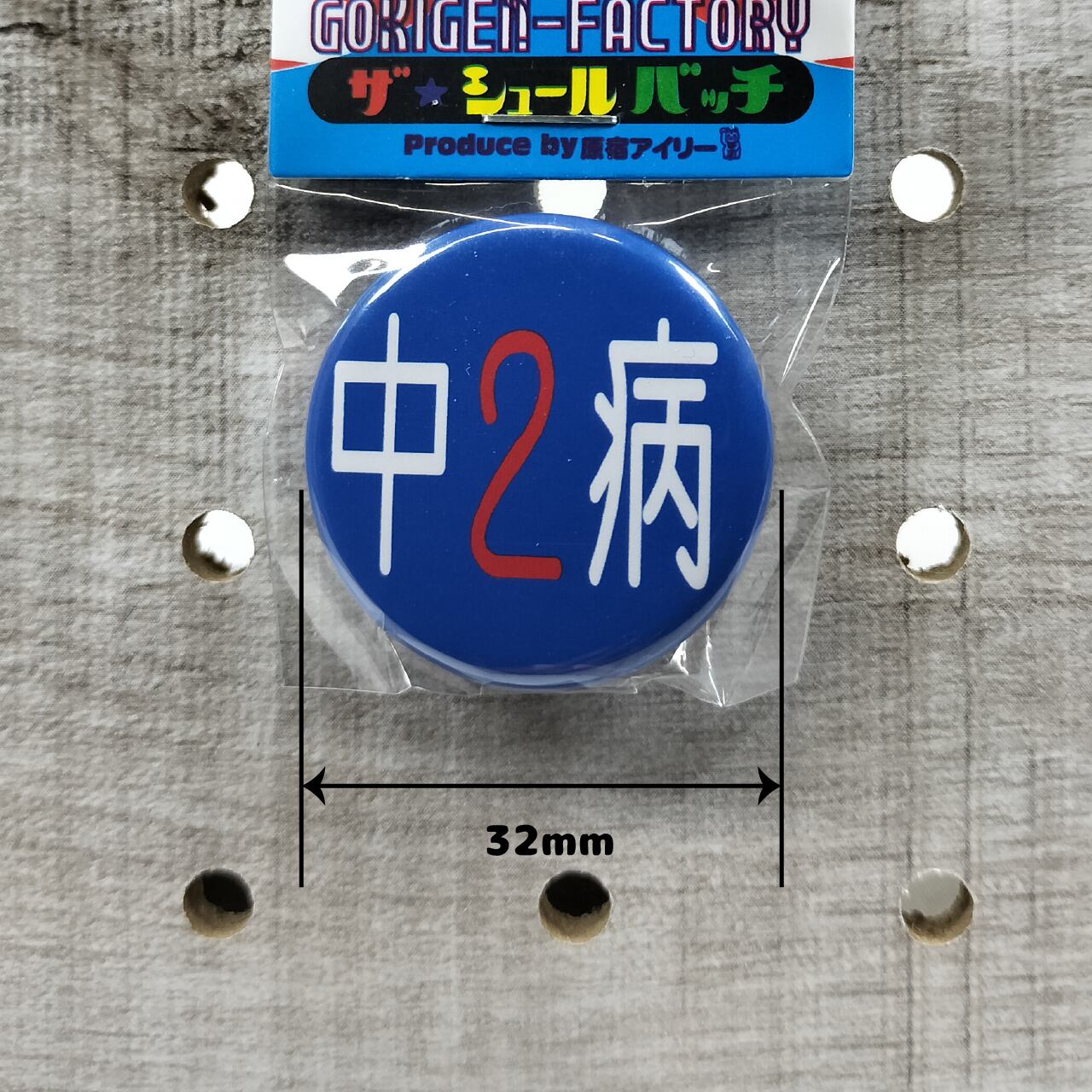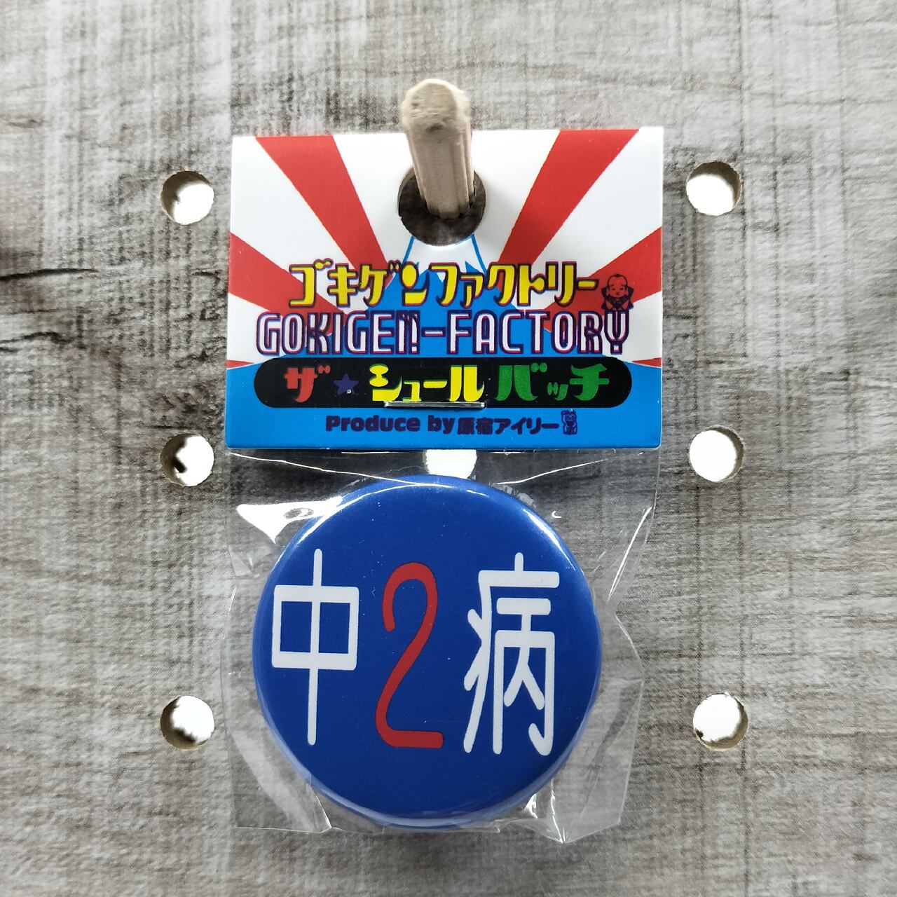 中2病 缶バッチ おもしろ 32mm 厨二病 ダサい かっこつける 粋がる 日本語 ゴキゲンファクトリー GOKIGEN-FACTRY