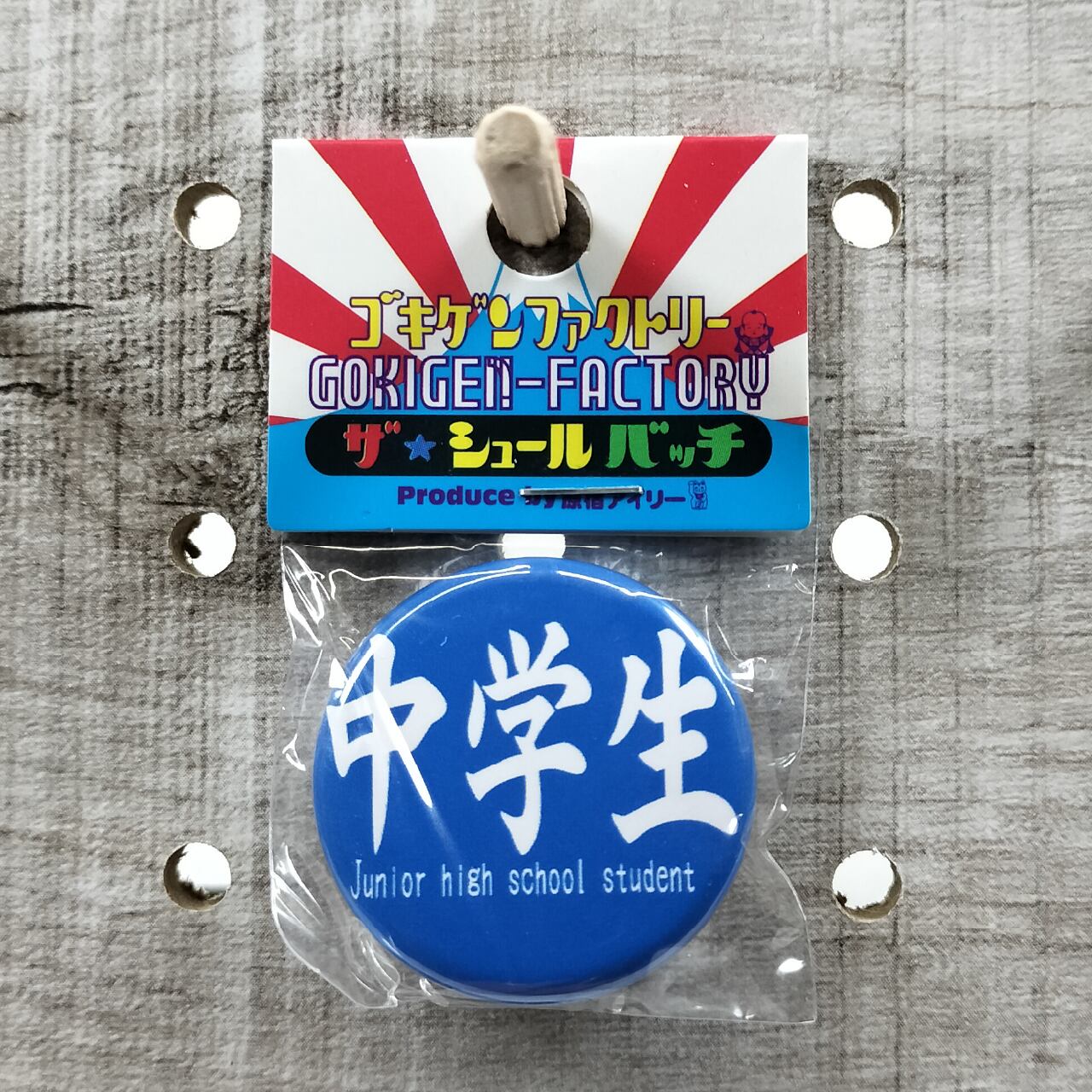 中学生 缶バッチ おもしろ 32mm 義務教育 学生 日本語 ゴキゲンファクトリー GOKIGEN-FACTRY