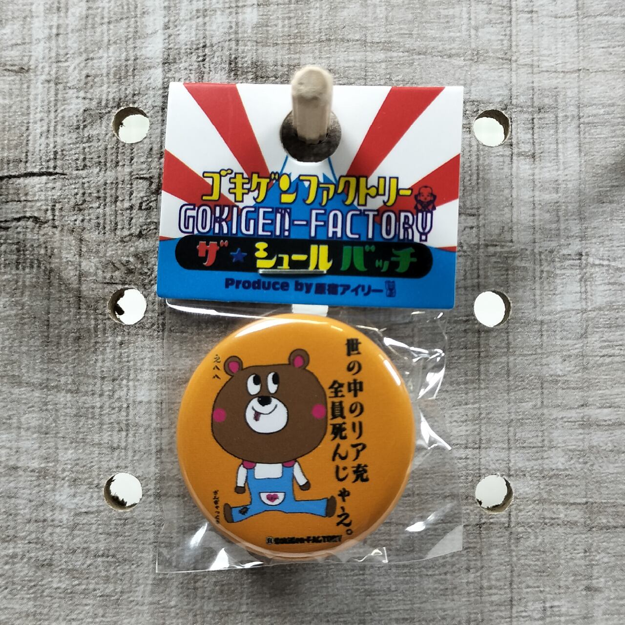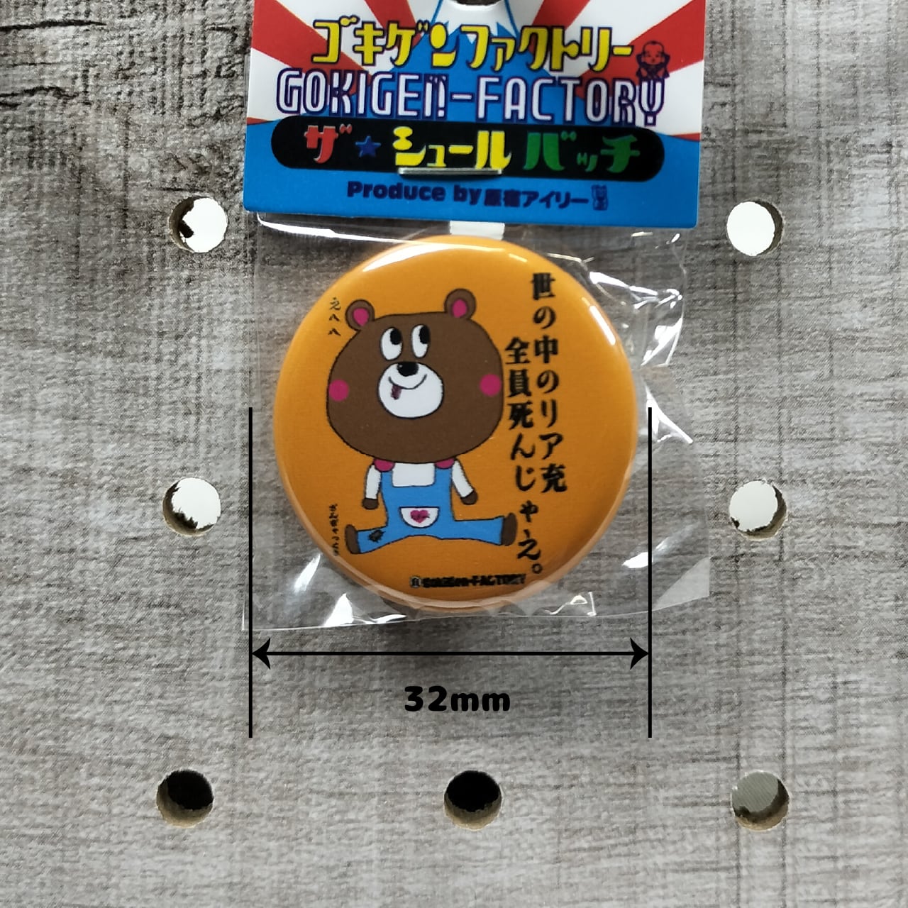 自虐 リア充みんな死ね 缶バッチ おもしろ 32mm 羨ましい 妬み 嫉妬 日本語 ゴキゲンファクトリー GOKIGEN-FACTRY