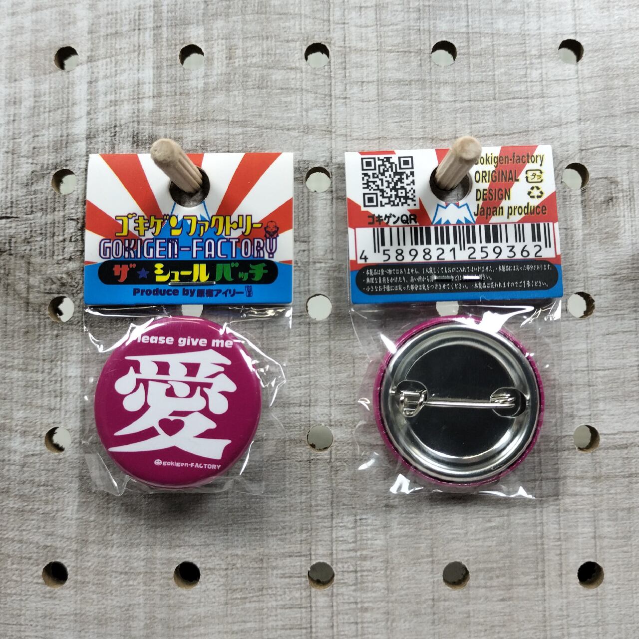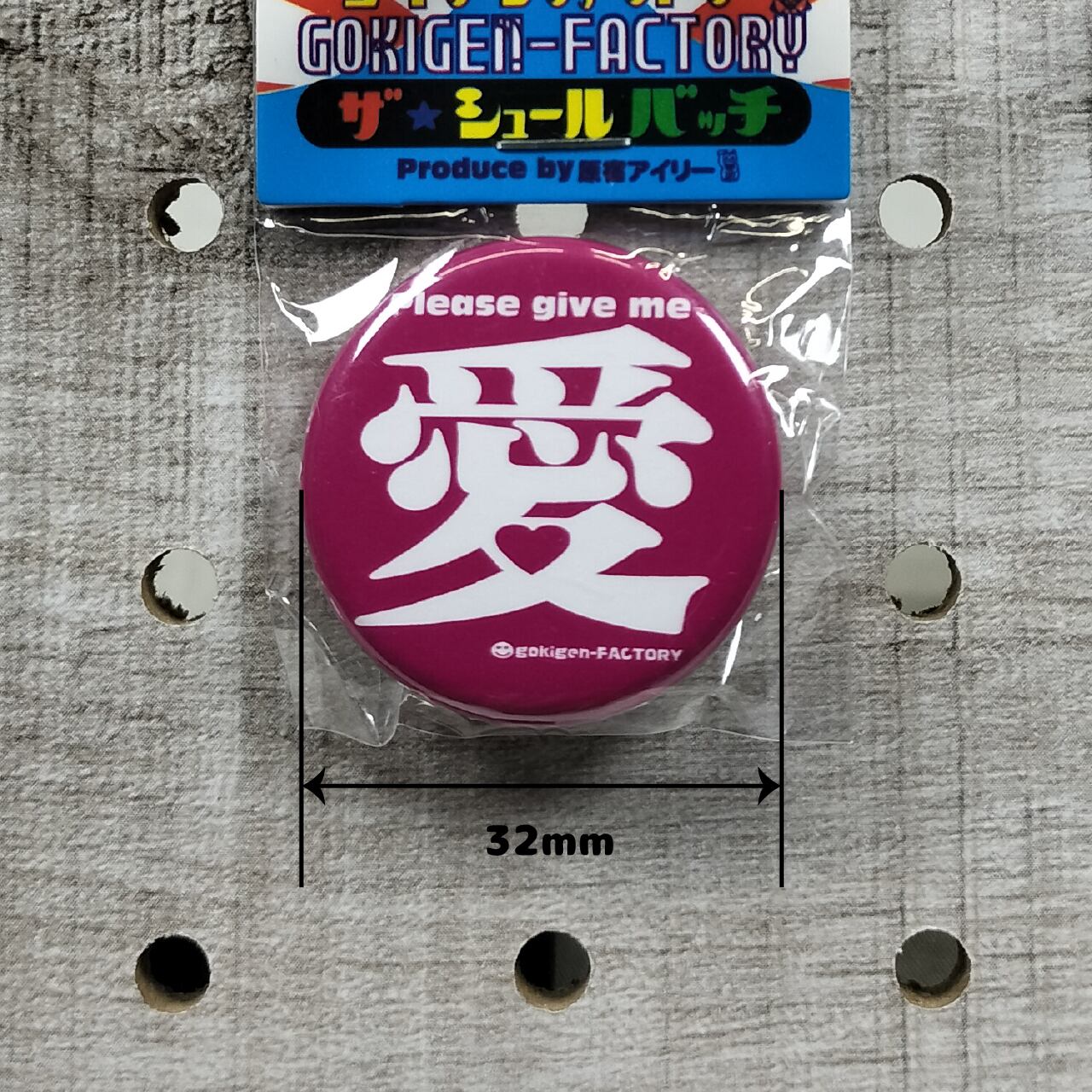 愛 缶バッチ おもしろ 32mm 愛情 恋愛 愛着 愛好 日本語 ゴキゲンファクトリー GOKIGEN-FACTRY