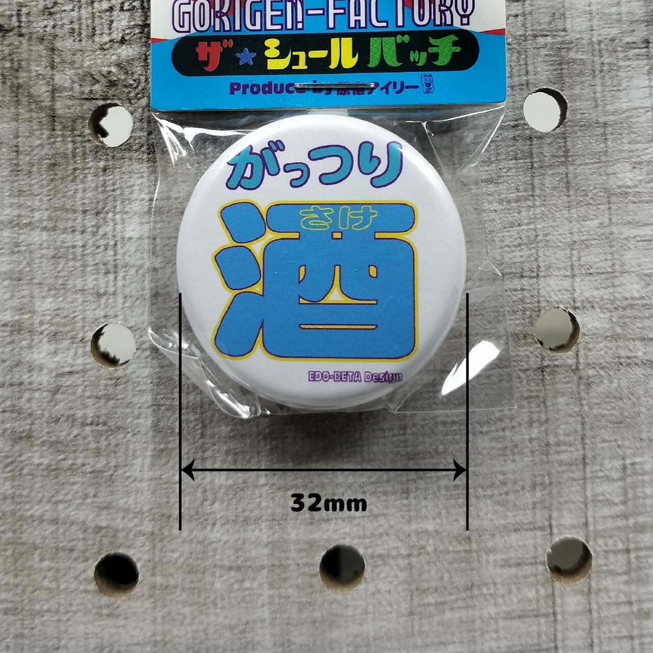 がっつり酒 缶バッチ おもしろ 32mm 呑兵衛 酒豪 左党 上戸 日本語 ゴキゲンファクトリー GOKIGEN-FACTRY