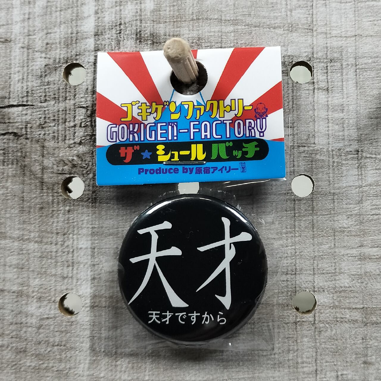 天才ですから 缶バッチ おもしろ 32mm 頭いい 奇才 鬼才 秀才 日本語 ゴキゲンファクトリー GOKIGEN-FACTRY