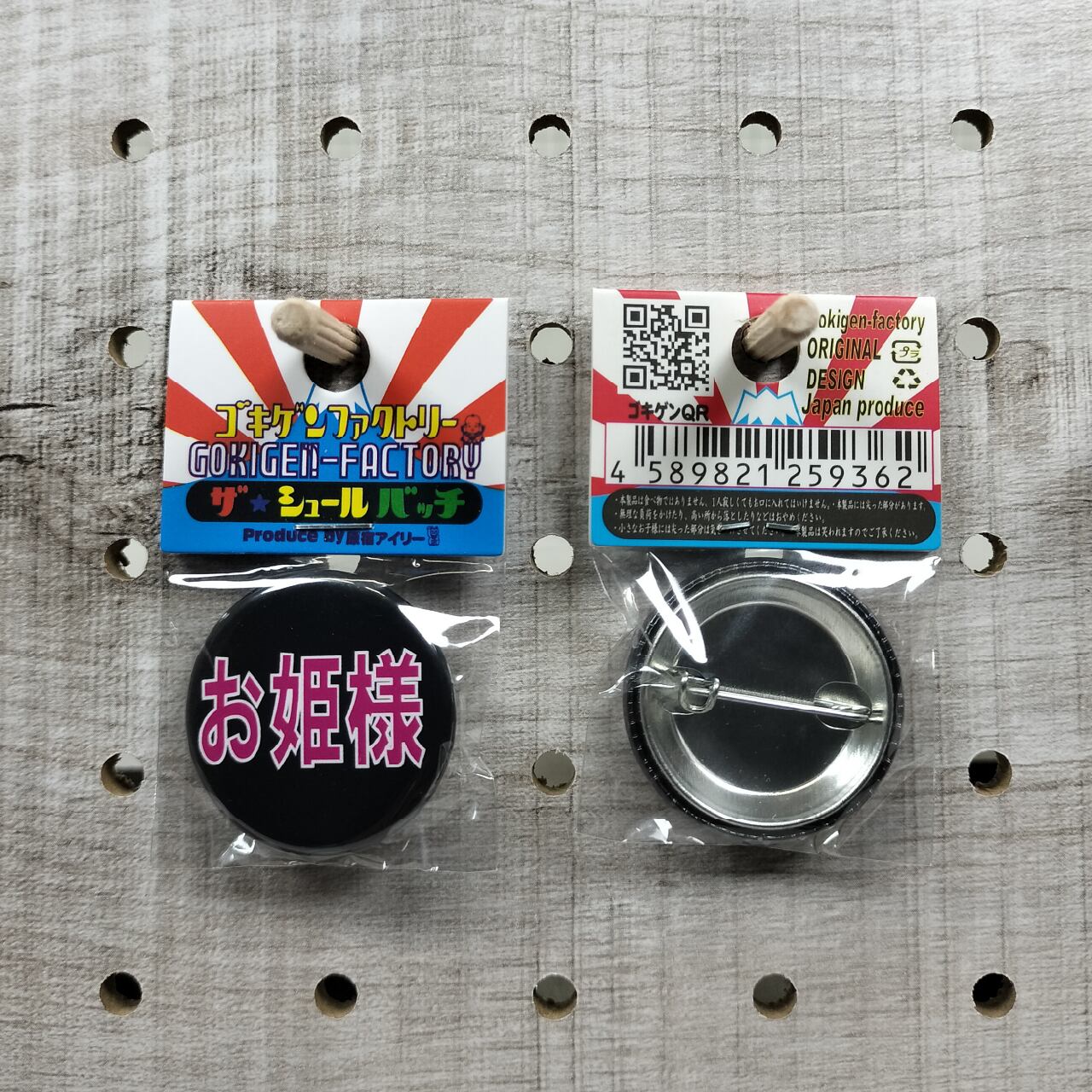 お姫様 缶バッチ おもしろ 32mm プリンセス 姫 日本語 ゴキゲンファクトリー GOKIGEN-FACTRY