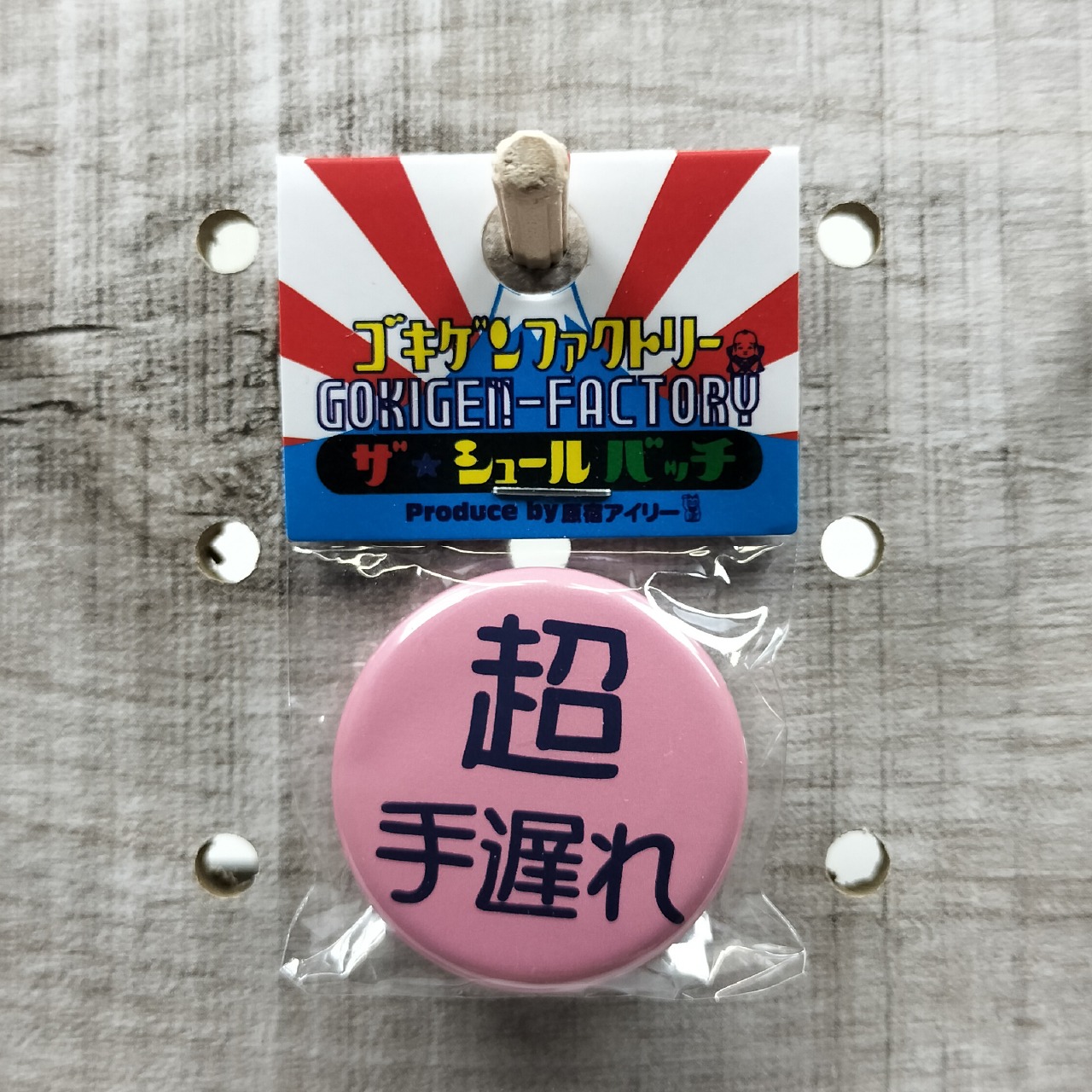 超手遅れ 缶バッチ おもしろ 32mm 時すでに遅し どうにもならない 救いようがない 後の祭り 日本語 ゴキゲンファクトリー GOKIGEN-FACTRY