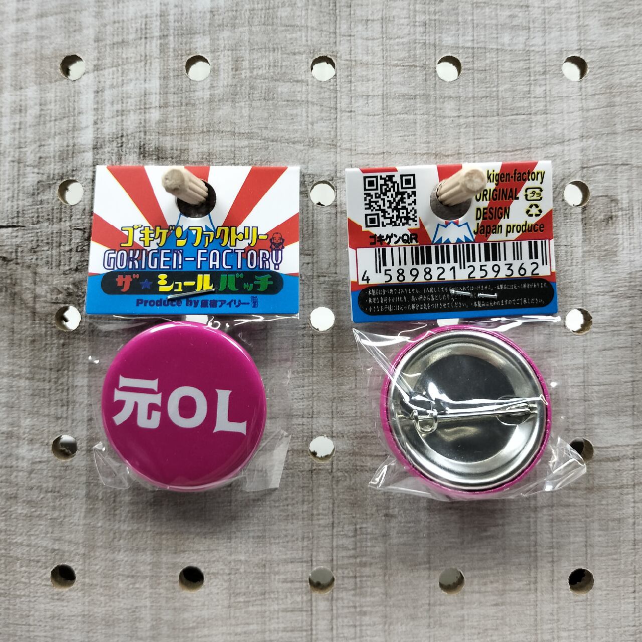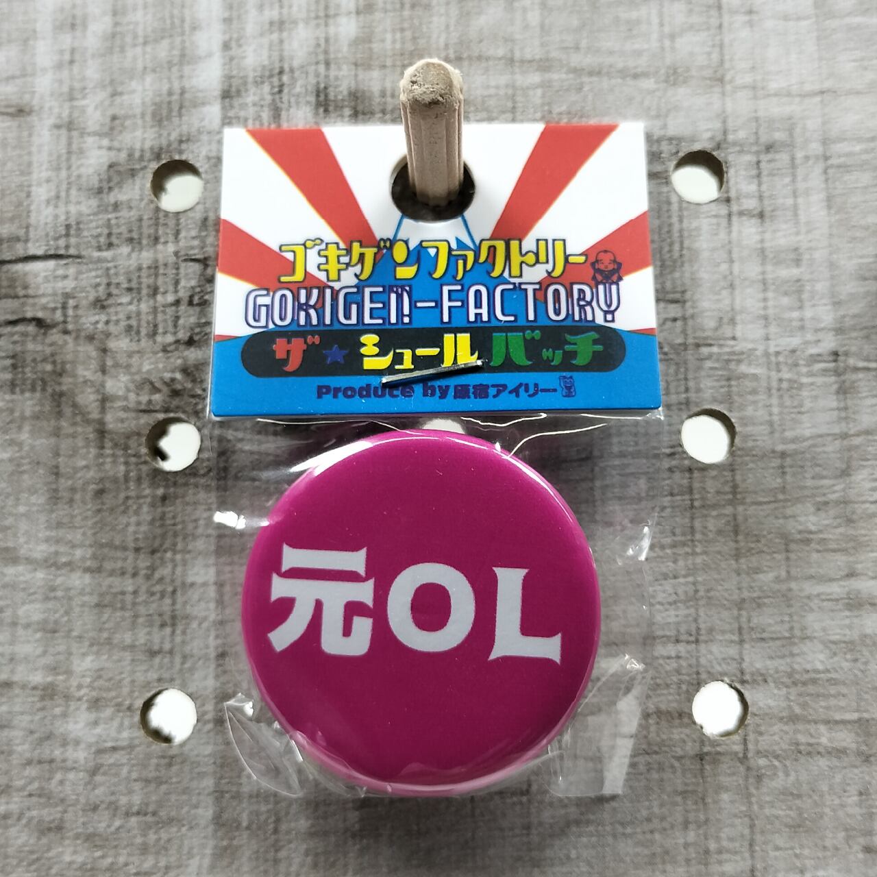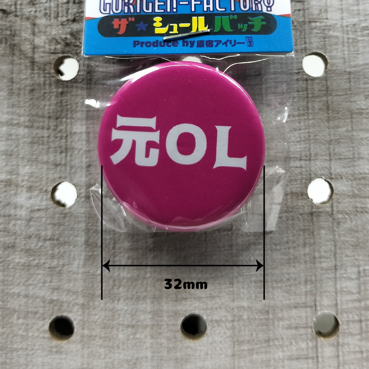 元OL 缶バッチ おもしろ 32mm 過去 仕事 日本語 ゴキゲンファクトリー GOKIGEN-FACTRY