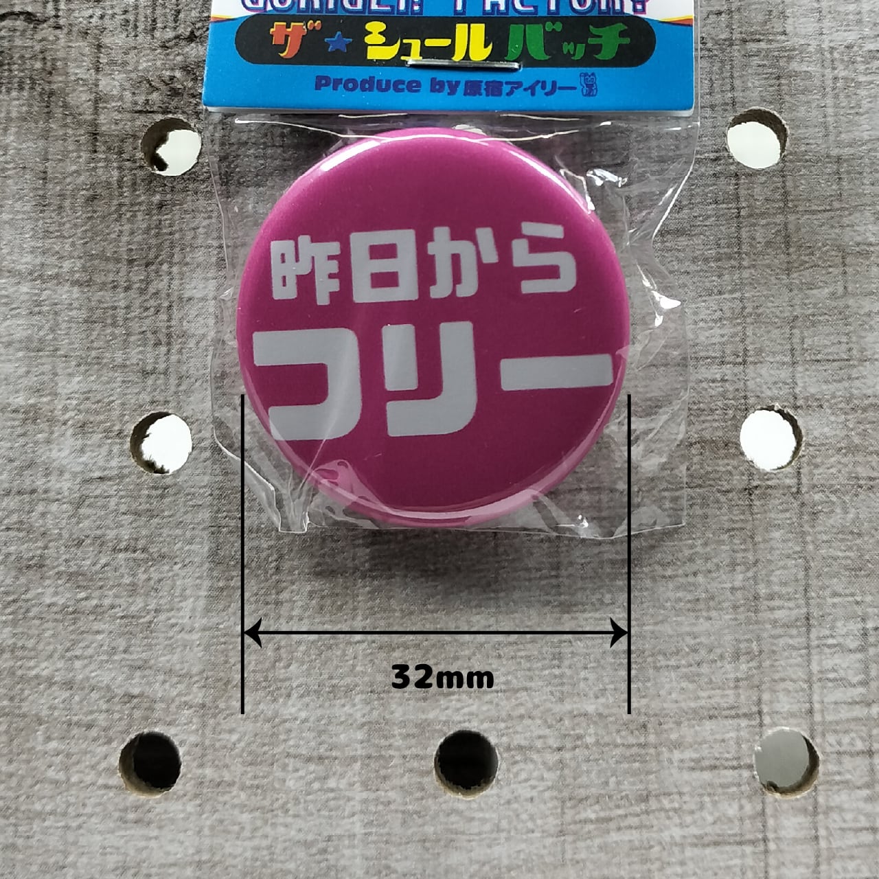 昨日からフリー 缶バッチ おもしろ 32mm 自由 解放 日本語 ゴキゲンファクトリー GOKIGEN-FACTRY