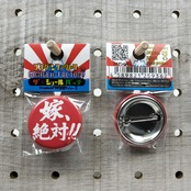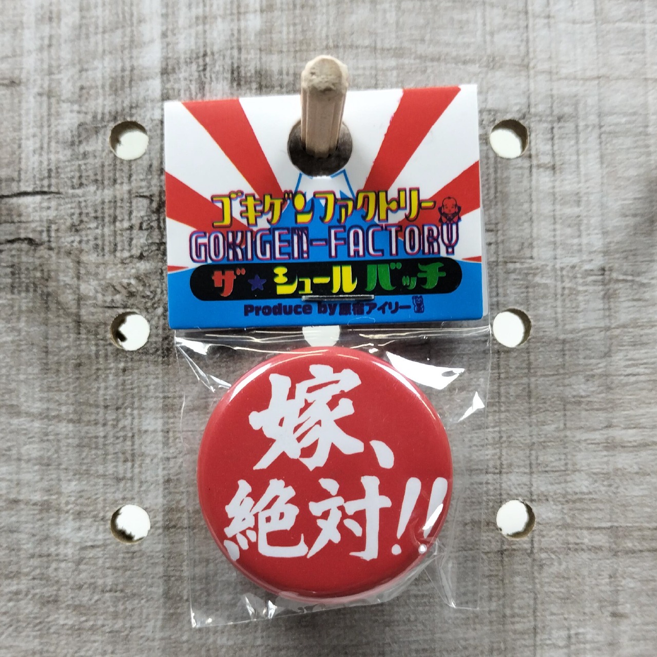 嫁、絶対!! 缶バッチ おもしろ 32mm 必ず 鬼嫁 尻に敷かれる かかあ天下 日本語 ゴキゲンファクトリー GOKIGEN-FACTRY