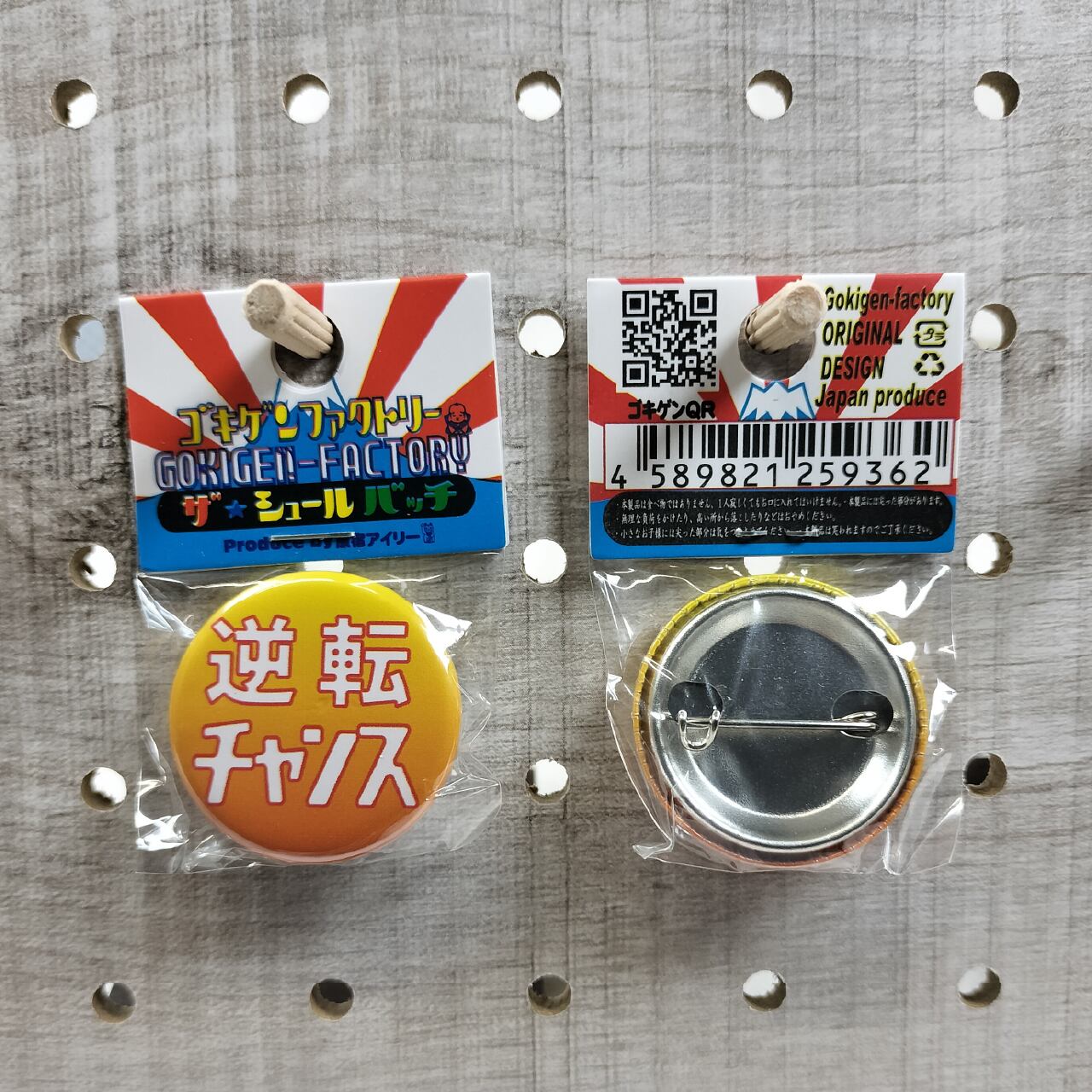 逆転チャンス 缶バッチ おもしろ 32mm 一発逆転 ギャンブル 日本語 ゴキゲンファクトリー GOKIGEN-FACTRY