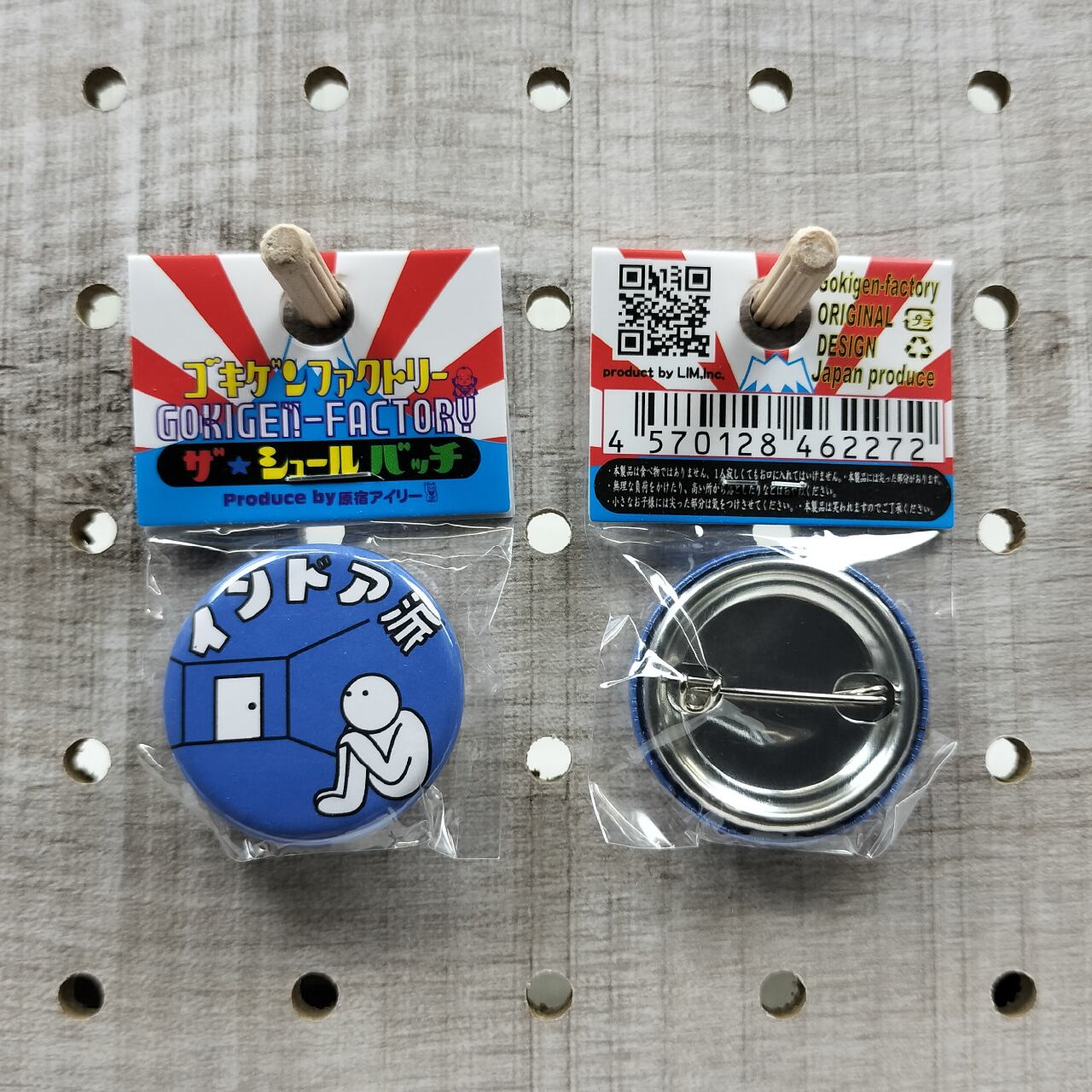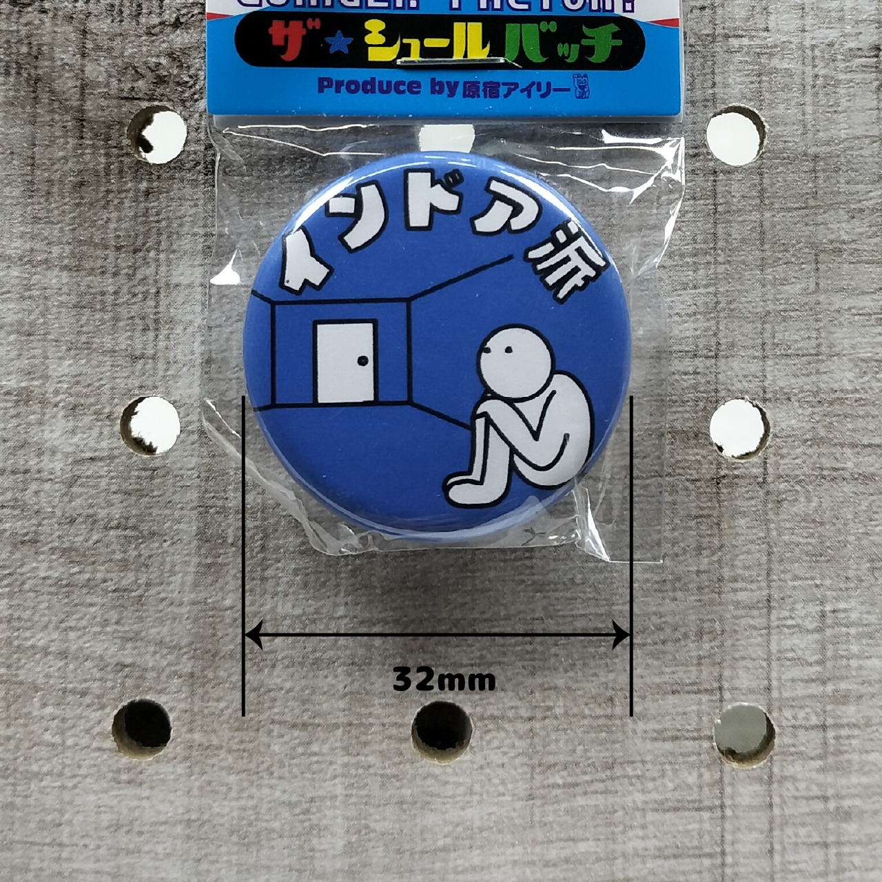 インドア派 缶バッチ おもしろ 32mm 室内 陰キャ ヲタク 日本語 ゴキゲンファクトリー GOKIGEN-FACTRY