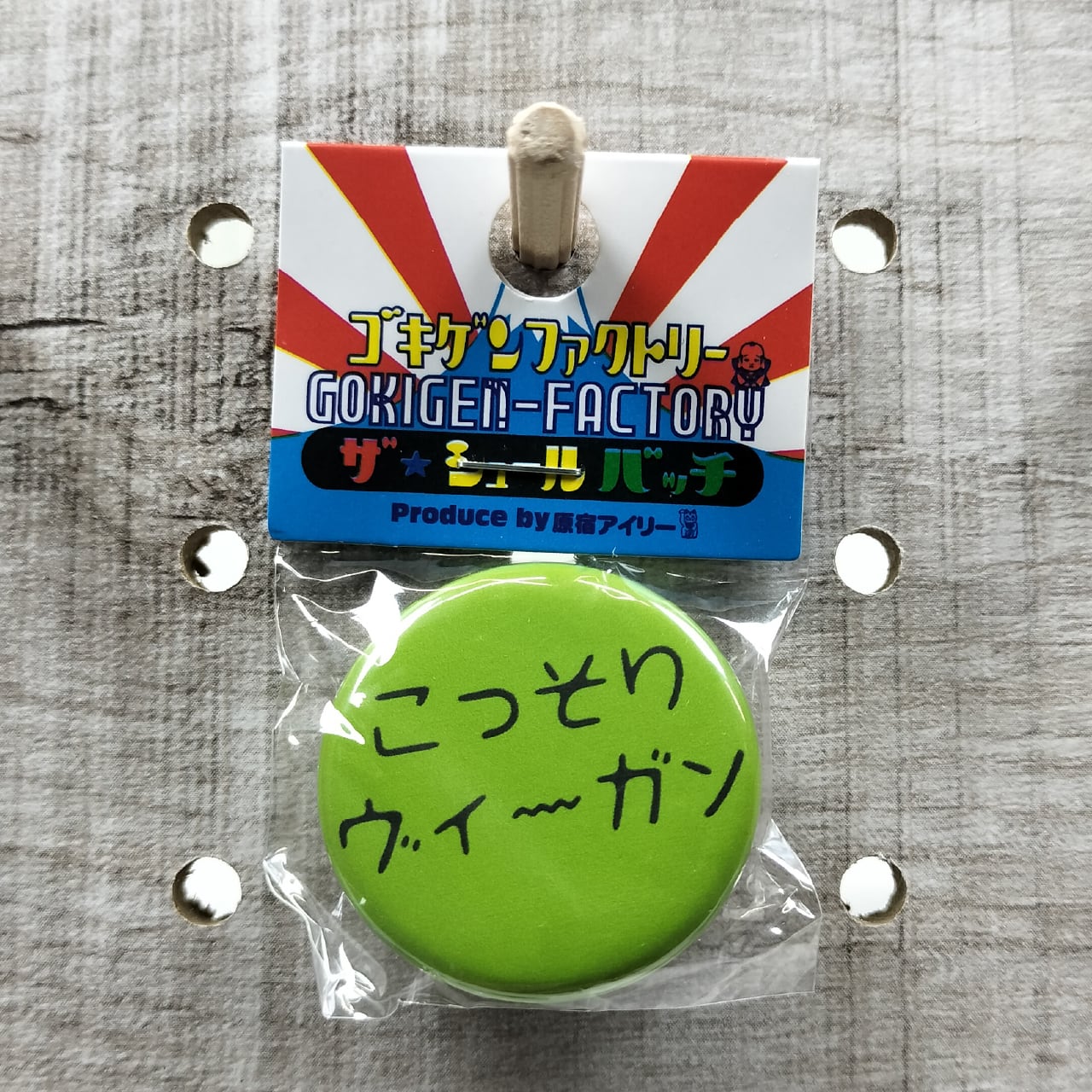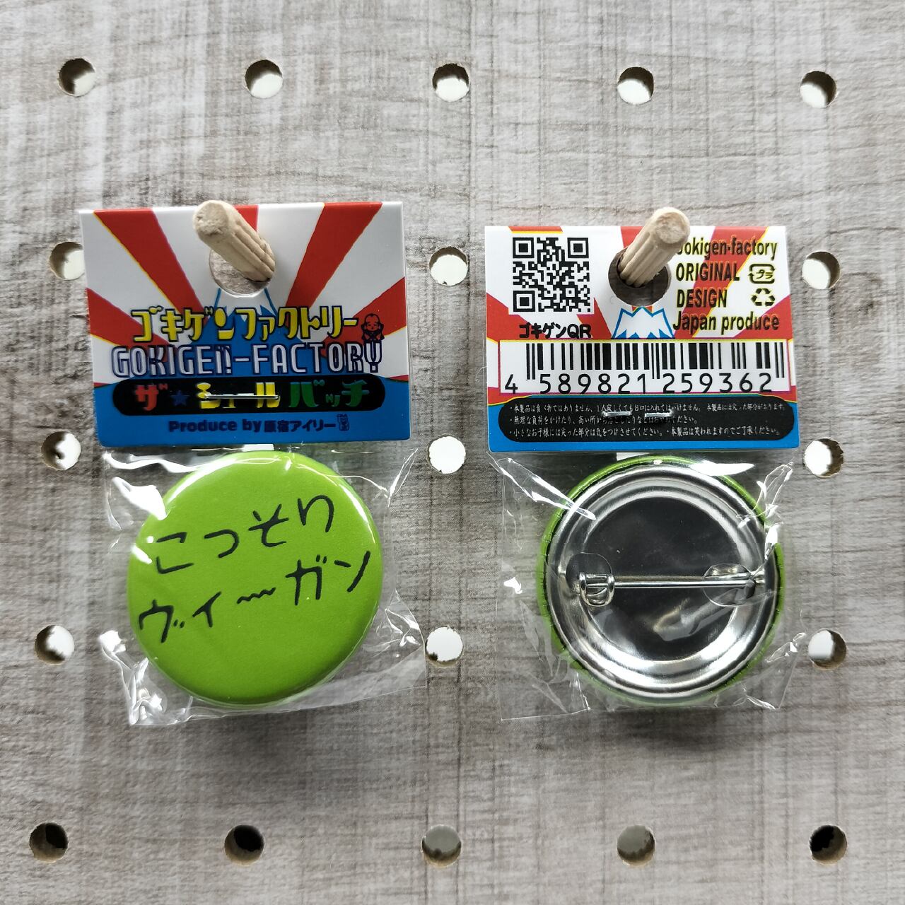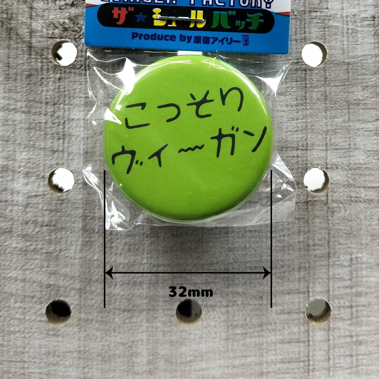 こっそりヴィーガン 缶バッチ おもしろ 32mm 野菜 ひっそり 密かに 日本語 ゴキゲンファクトリー GOKIGEN-FACTRY