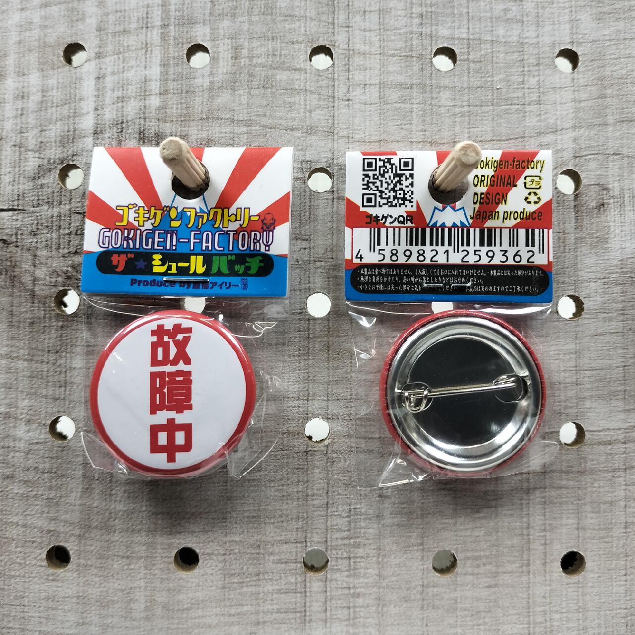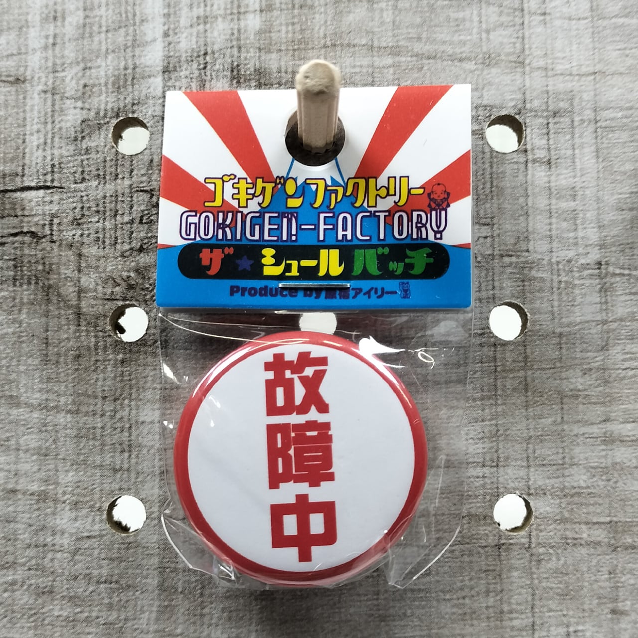 故障中 缶バッチ おもしろ 32mm 不調 不具合 障害 停止中 日本語 ゴキゲンファクトリー GOKIGEN-FACTRY