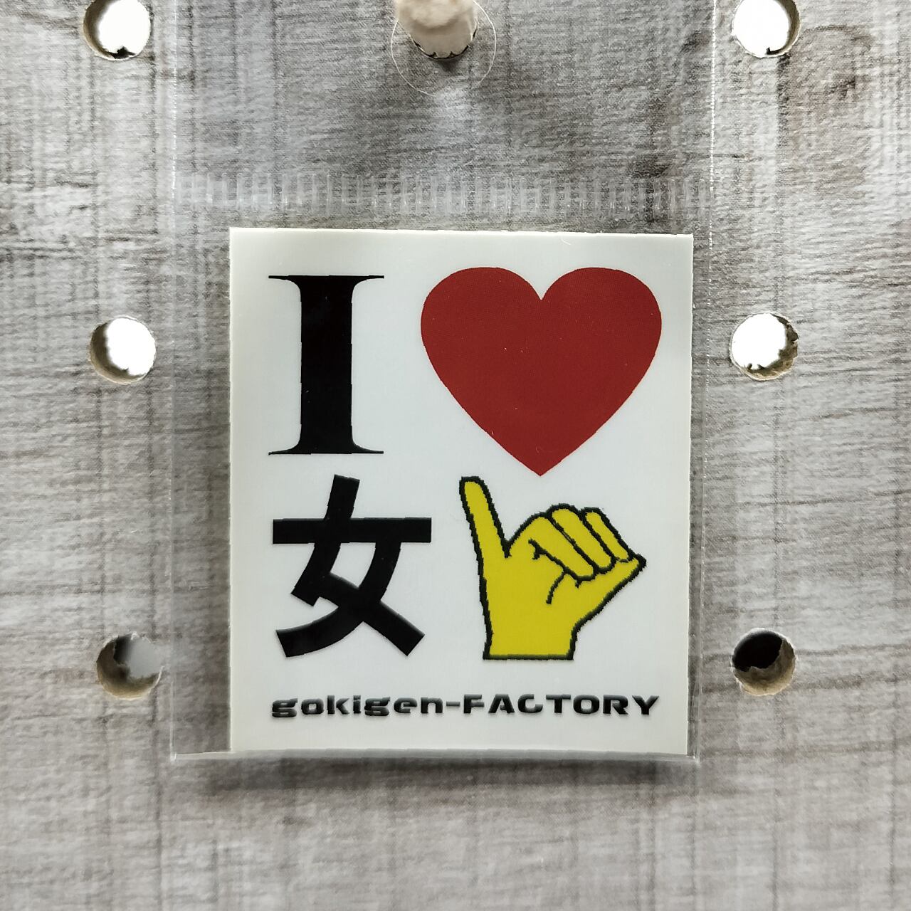 I Love 女 ステッカー 小さめ おもしろ 女好き チャラい クラブ ゴキゲンファクトリー GOKIGEN-FACTRY