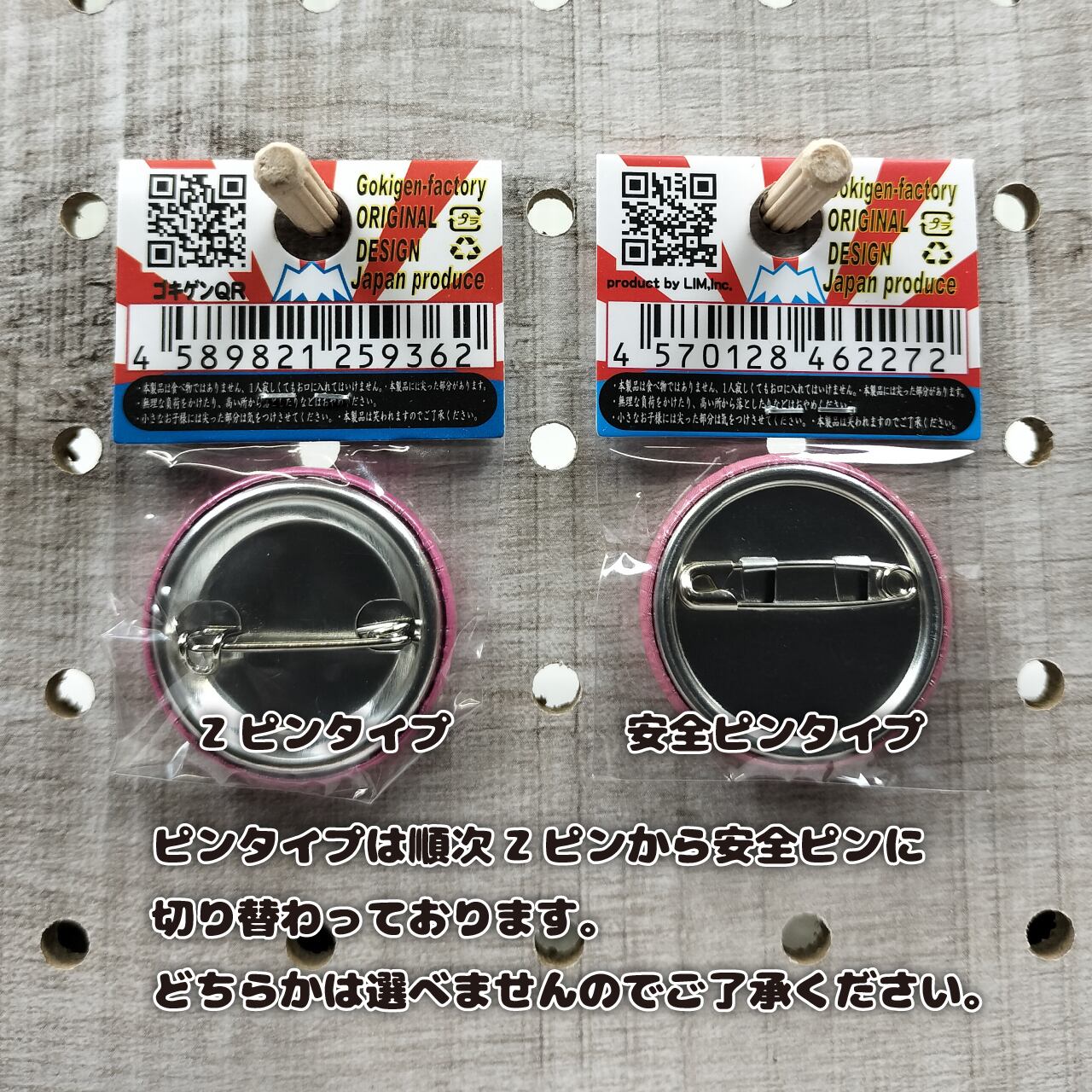 ※ピンタイプは順次Zピンから安全ピンに切り替わっております。どちらかは選べませんのでご了承ください。